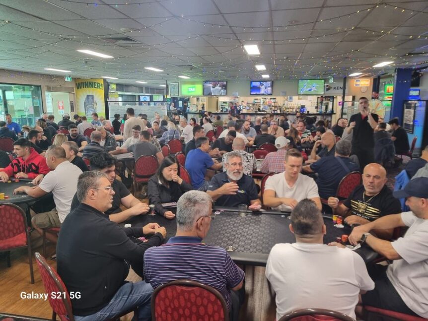 NPL poker tournament prize pool $20k. Full room 200 people great atmosphere. Late buy 2pm. Lets go people lets have a go #wp